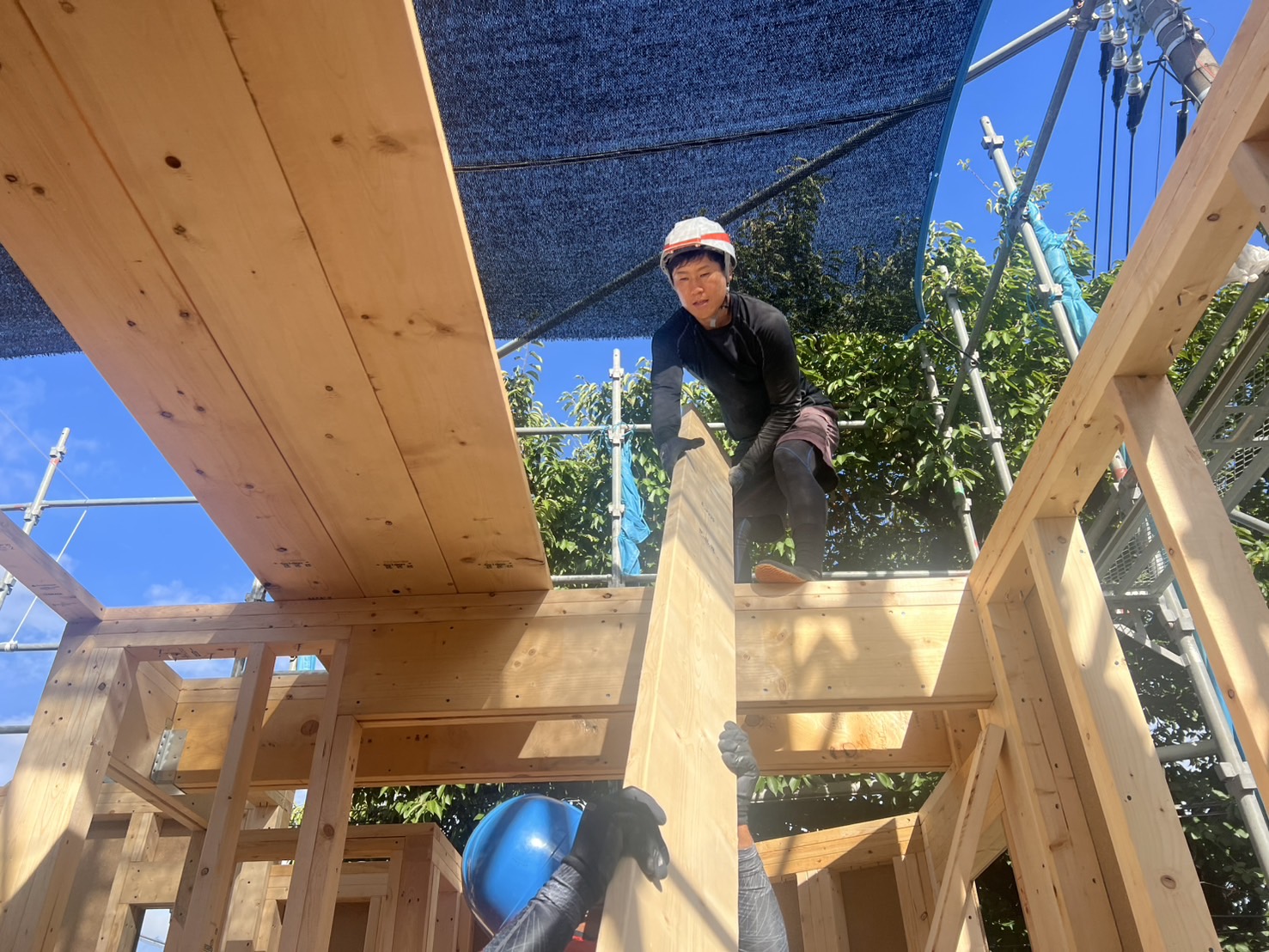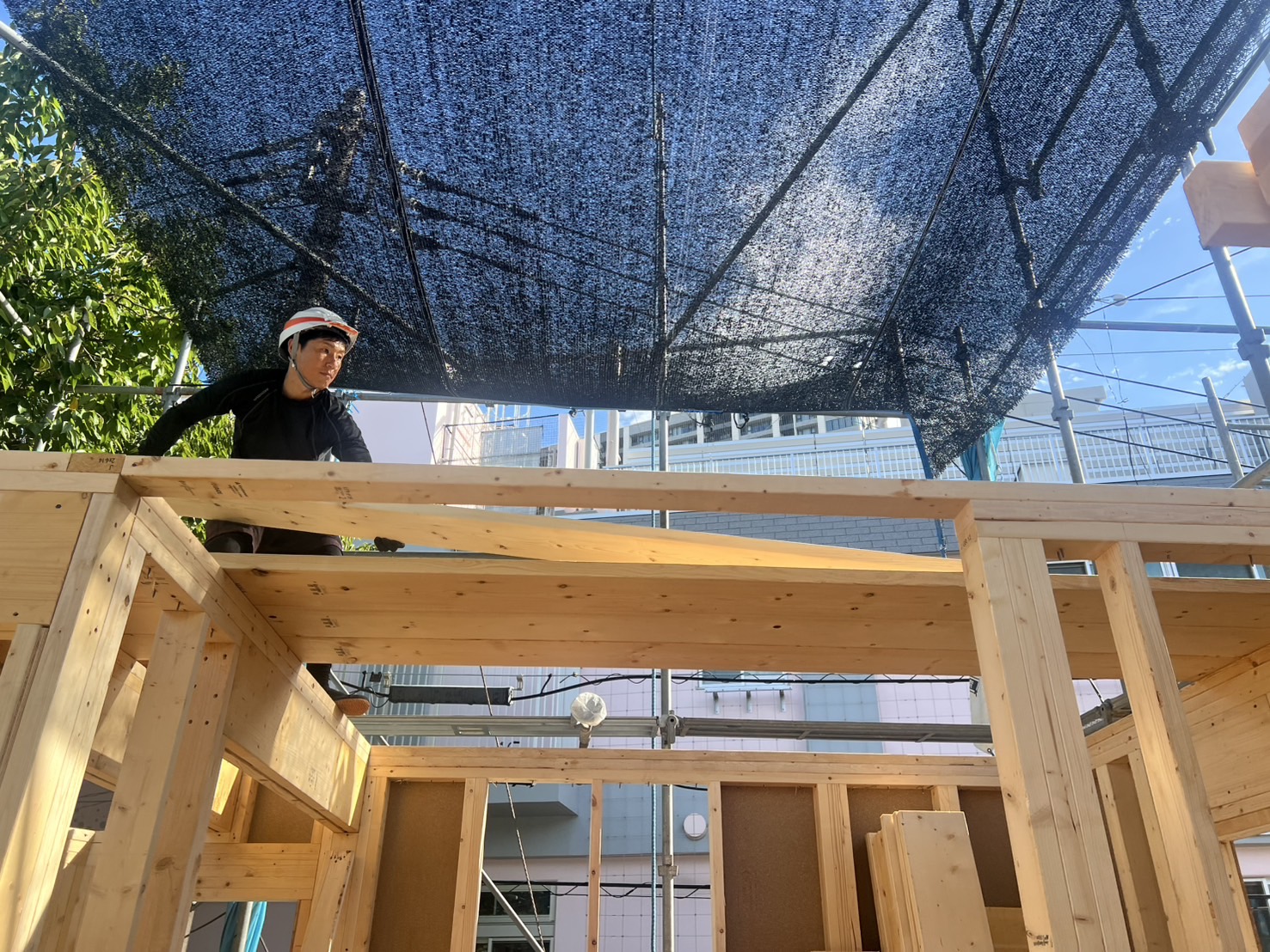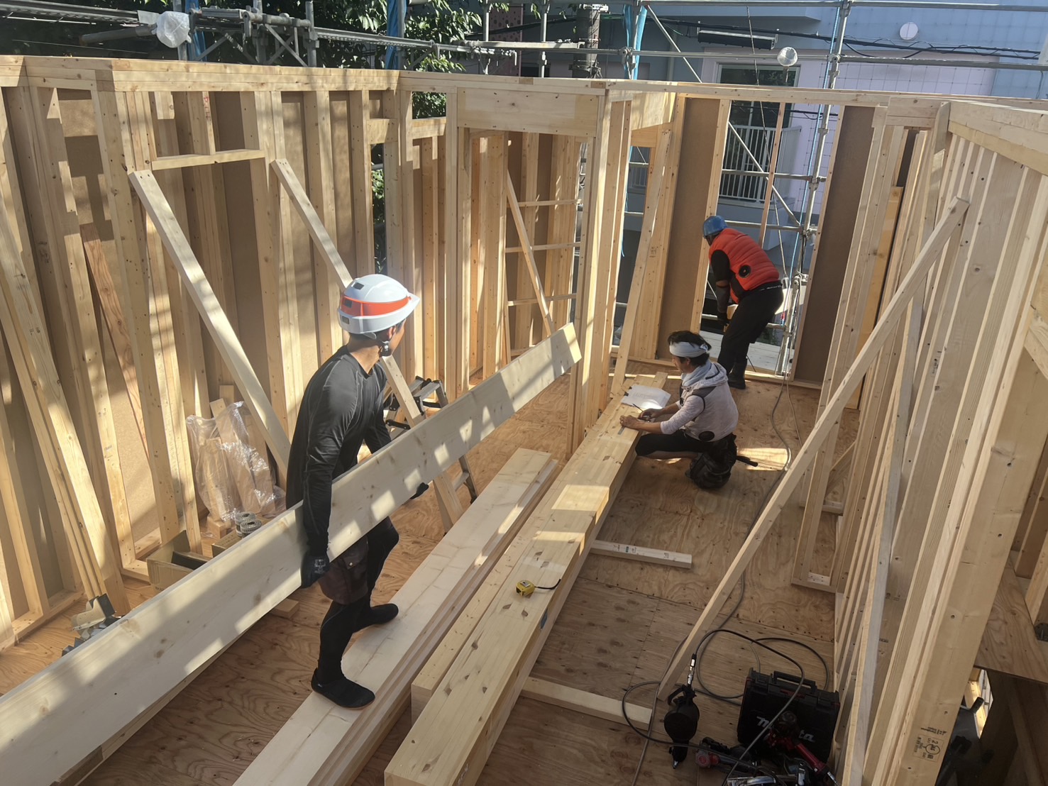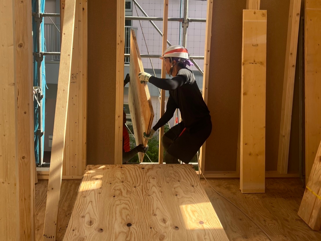 トラックから降ろした木材を運搬します。2階以上の現場では、荷揚げ作業を行います!ベテランスタッフが一緒に作業をするため、初めての方も安心して作業していただけます。